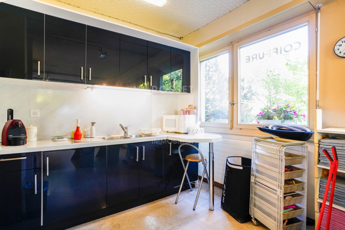 Il est actuellement adapté pour accueillir un salon de coiffure, mais peut également convenir à d'autres commerces ou professions de service.