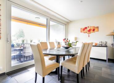 L'appartement de 5 pièces situé au premier étage avec une surface PPE de 140 m² se distribue comme ceci :