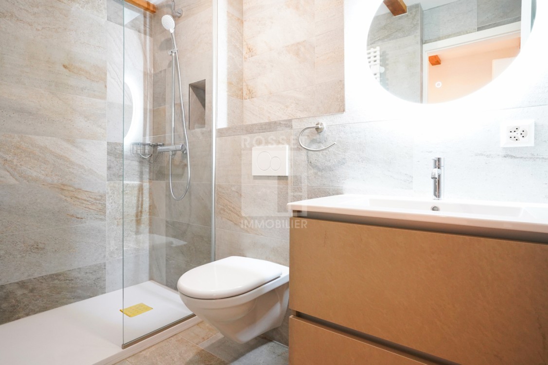 L'étage supérieur se compose de deux chambres à coucher lumineuses et d'une salle de douche contemporaine.