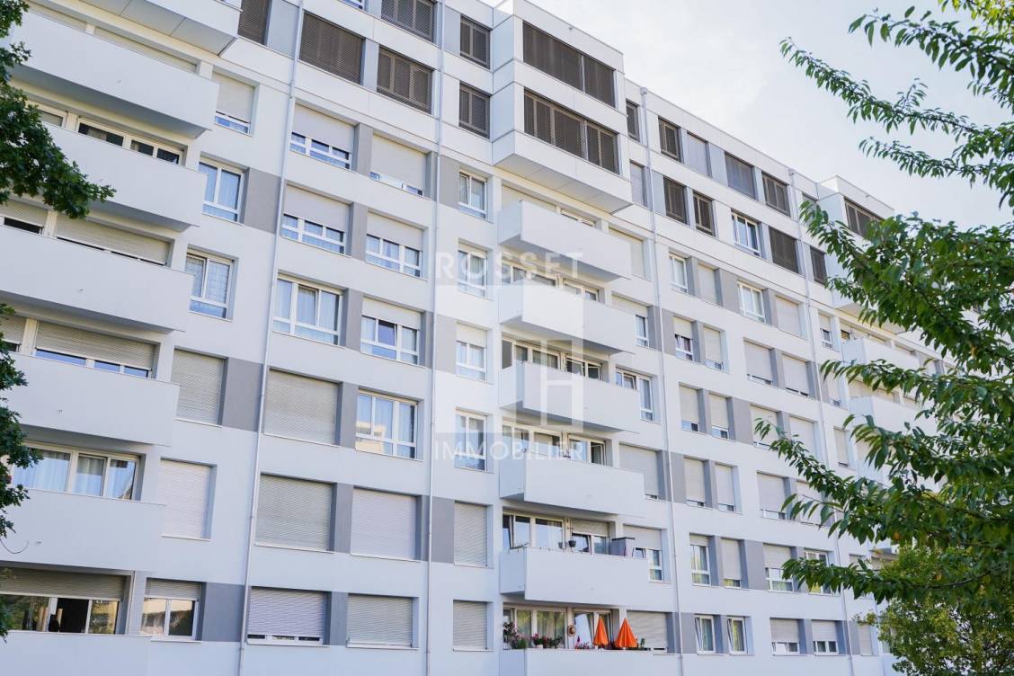 Dans le quartier de Meyrin, appartement de 3 pièces au 3ème étage, situé dans un immeuble avec buanderie collective et ascenseur.