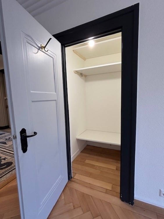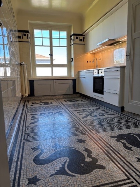 Magnifique appartement de 3 pièces au 5ème étage, traversant, avec mosaïque à l'ancienne, cuisine équipée (vitro-céram, four, hotte, lave-vaisselle) sdb/wc avec possibilité d'installer une machine à laver , séjour avec balcon donnant sur parc arborisé, réduit, une chambre, nombreuses armoires encastrées et une cave complètent ce bien. Situé dans un immeuble de style ancien, beaucoup de caractère, parquets anciens, buanderie, code d'entrée, local à vélos.